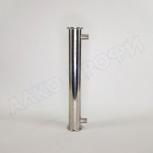 Холодильник Димрота проходной в царге 2" это Холодильник Димрота помещённый в царгу с выходами для подключения воды в бок, что позволяет оставить открытыми оба фланца. Это позволяет использовать холодильник в роли не только дефлегматора, но и проходного холодильника в режиме потстил. Это помогает реализовать весь потенциал Димрота с огромным КВД в охлаждении.